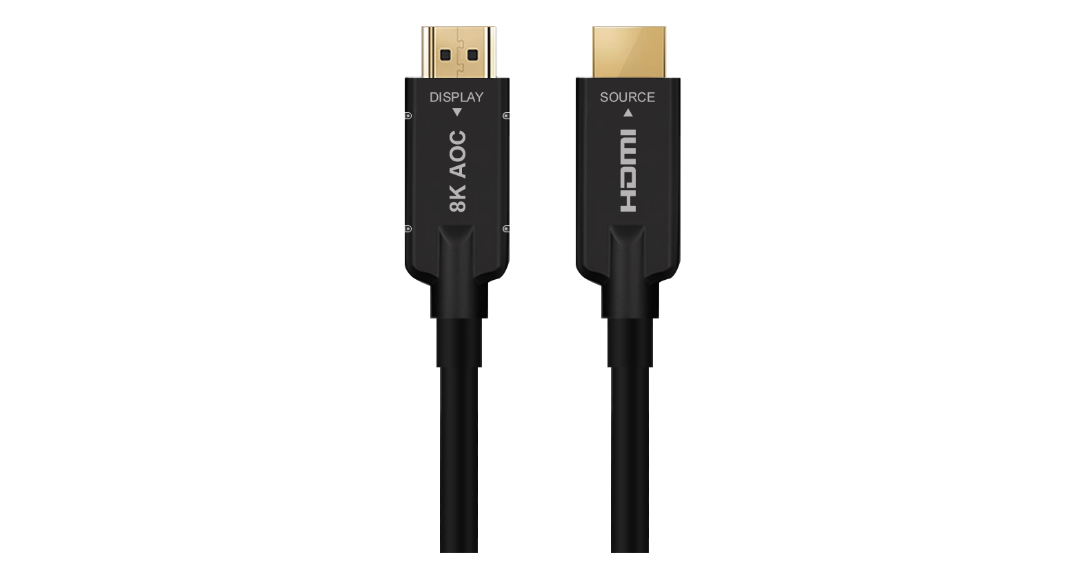 Армированный гибридный оптоволоконный кабель HDMI™ AOC, оснащен стандартными портами HDMI™ Type A с позолотой. Есть поддержка высокого разрешение изображения UHD 8K при 60 Гц и передача несжатого сигнала.