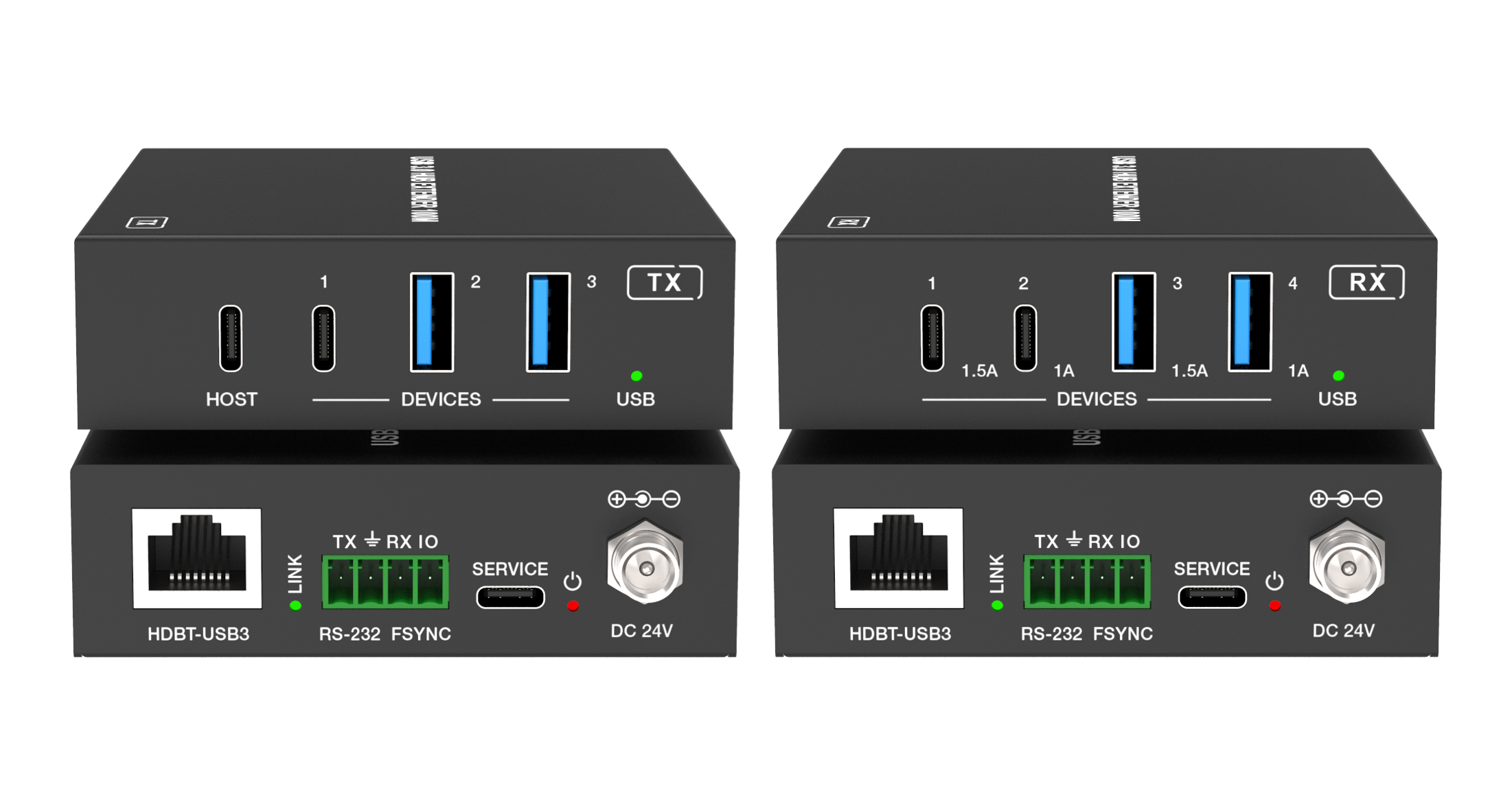 - USB 3.2 расширитель до 100 м с двумя входами USB-C/USB-B