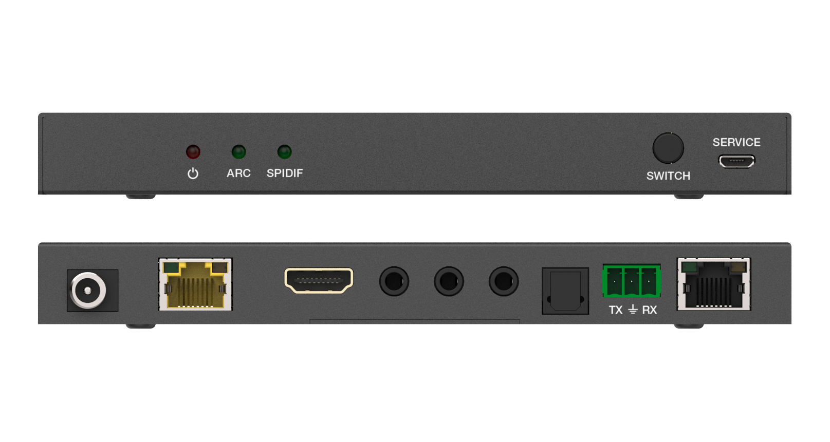 Передатчик поддерживает эмбедирование и деэмбедирование аудио. Приемник поддерживает деэмбедирование аудио. Также поддерживает eARC/ARC через выход RX HDMI на вход TX HDMI или деэмбедирование на TX HDMI только аудио и выходные порты SPDIF, USB 2.0 (настраиваемый хост/устройство) и двунаправленный POC.