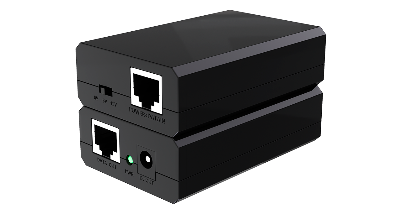- Преобразование PoE 48 В → 5/9/12 В — питание оборудования без поддержки PoE через стандартный Ethernet-кабель.
